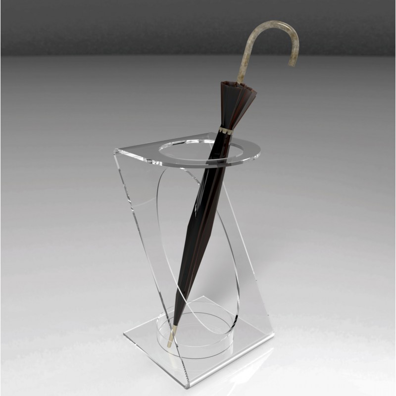 Elegantissimo porta ombrelli in plexiglass trasparente, spessore 10mm, bordi lucidi grazie al taglio laser. Il cerchio in plexiglass applicato alla base fungerà da salvagoccia Misure: cm H 50 x L 28 x P 28