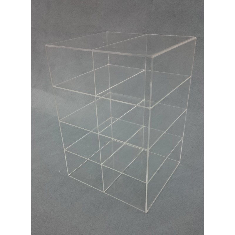 Espositore in plexiglass porta schede, biglietti, fogli e documenti vari, a nido d'ape 8 caselle. Misure: Cm H 33 x L 23(larghezza utile tasca: 11 cm) x P 21,5