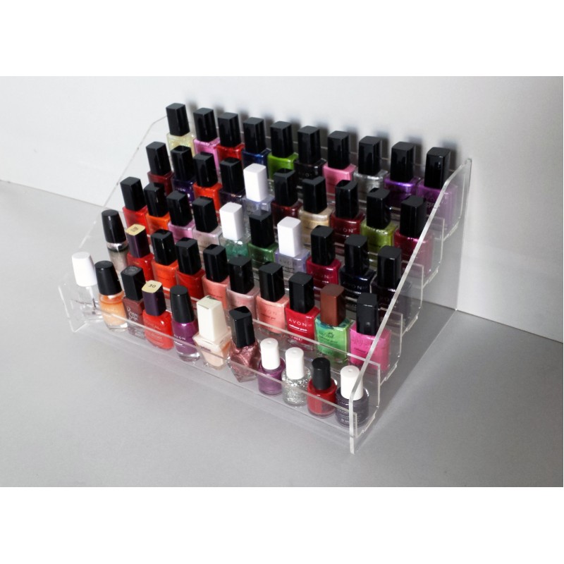 Espositore contenitore vetrinetta in plexiglas da banco per smalti nails, Make up, 5 piani (fino a un minimo di 50 smalti). Misure: cm H 18 x L 36 x P 24