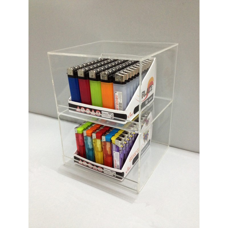 Espositore in plexiglas per accendini da banco a 2 piani Misure: cm H 24 x L 17,5 x P 17